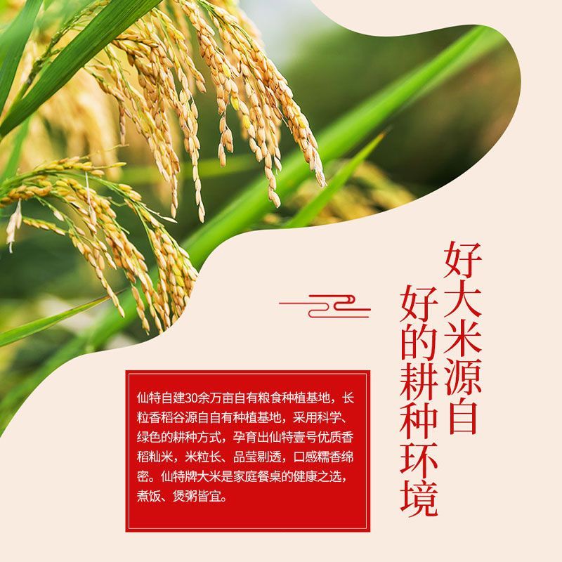 仙特壹號,稻谷源自仙特自有基地,采用科學(xué)、綠色的耕種方式,孕育出仙特壹號優(yōu)質(zhì)香稻秈米,米粒長、晶瑩剔透,口感糯香綿密。是家庭餐桌的健康之選,煮飯、煲粥皆宜。
